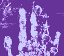 The G'MIC-QT extension for GIMP features the Colormap tool. It provides a way of mapping a color to a relative area close to the selected color. I used a custom set of colors that mimicked the GB palette but in purple. Sometimes I had to tweak the image before applying the filter. The contrast and brightness had to be drastically increased in order to reach brighter hues in the palette.